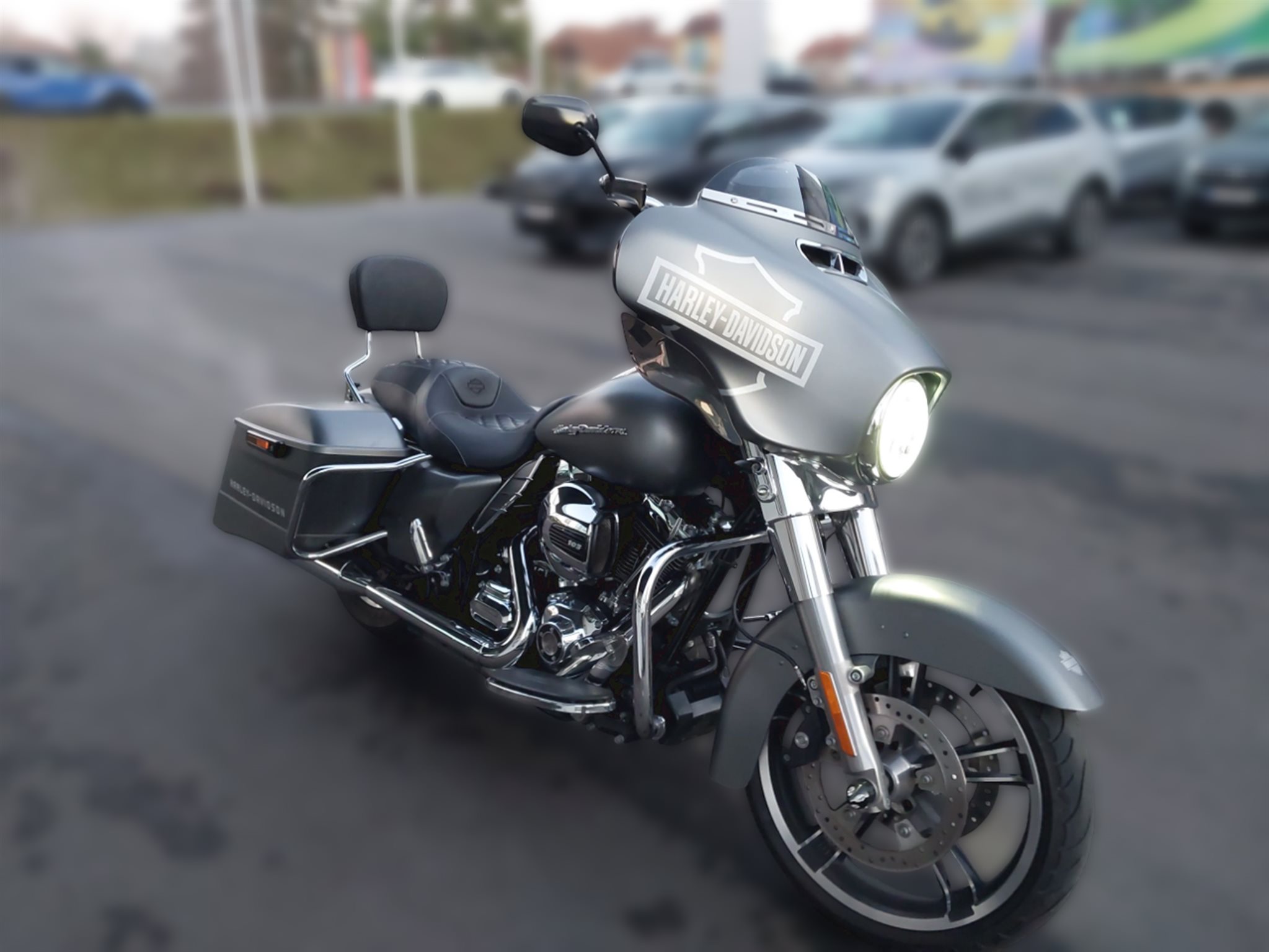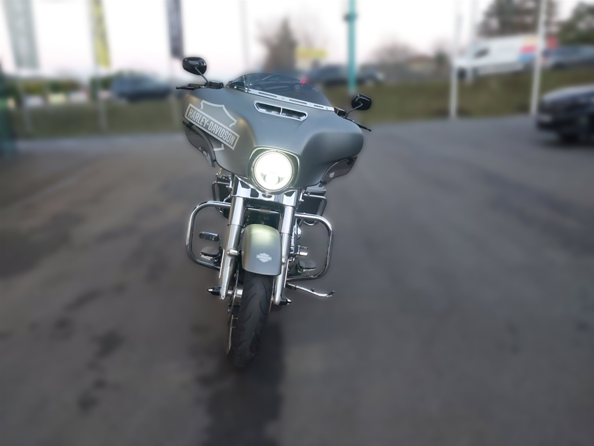 Es müsste die erste Harley gewesen sein, die ich je fahren durfte, damals in Blau mit einer schön lauten Screamin' Eagle-Anlage. Videos haben wir damals noch nicht produziert, nur ein Soundfile, aufgenommen um ca. 7.15 Uhr morgens in der Wohnhausschlucht um die Ecke. Die Street Glide 2017 in einem sagenhaften Metallic-Tangerine war zwar weniger laut, dafür aber eine der schönsten Harleys, die ich je gefahren bin. Ich konnte mich nicht satt sehen an den großen Flächen der Frontverkleidung und der tief sitzenden Koffer. Die Street Glide hat ein ausgewogeneres Profil als z.B. die Road Glide, die eine weniger harmonische Figur macht. Man hat nicht den vollen Komfort einer Ultra, aber mehr Fahrdynamik, eine angemessene Schräglagenfreiheit und eine ikonische Harley-Silhouette.