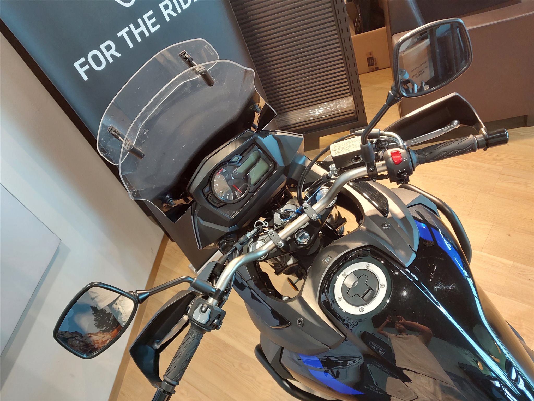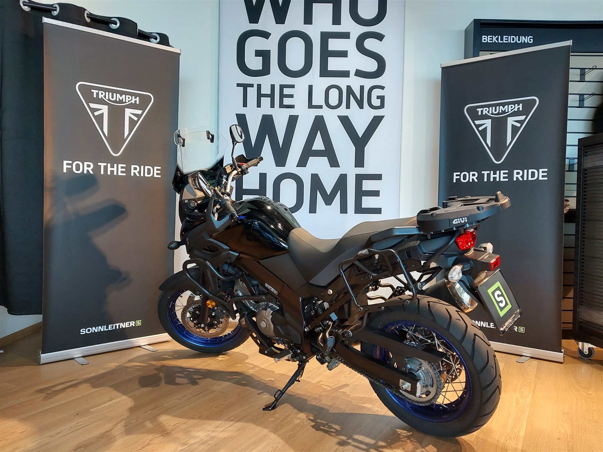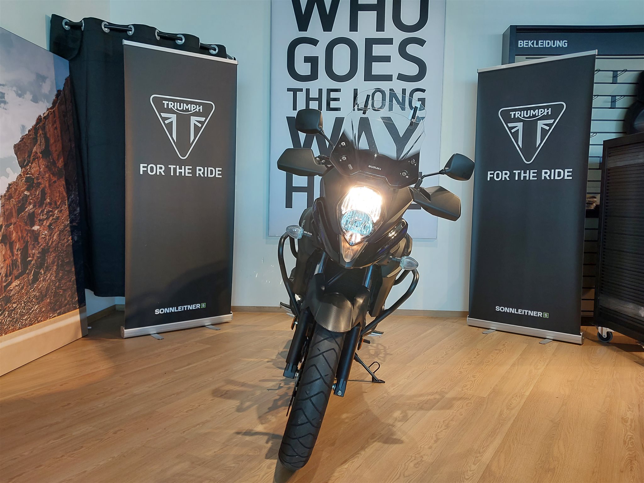Die kleine V-Strom 650 ist nicht nur optisch durch den ausgeprägten Entenschnabel, die gestapelten Scheinwerfer und die umfangreichen Instrumente nahe an der großen V-Strom 1000 dran. Die Ausstattung entspricht nämlich so gar nicht dem, was man unter" billigem Einstieg" versteht: Traktionskontrolle, quirliges Euro4-Triebwerk, harmonisches Fahrverhalten und noch zusätzliche Techno-Gadgets wie Low RPM Assist oder Suzuki Easy Start System. Der Preis hält sich zur Freude der Kundschaft in Grenzen.